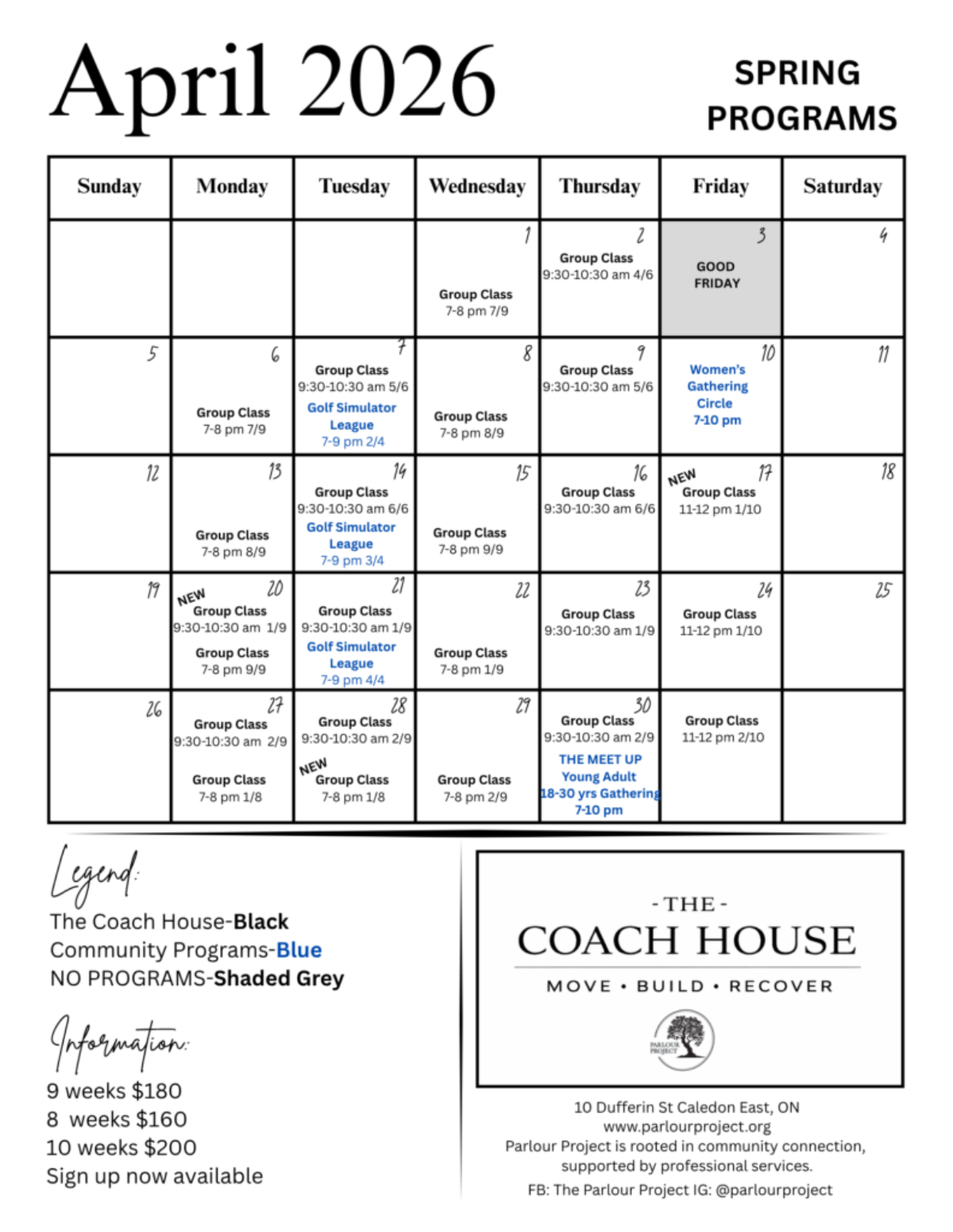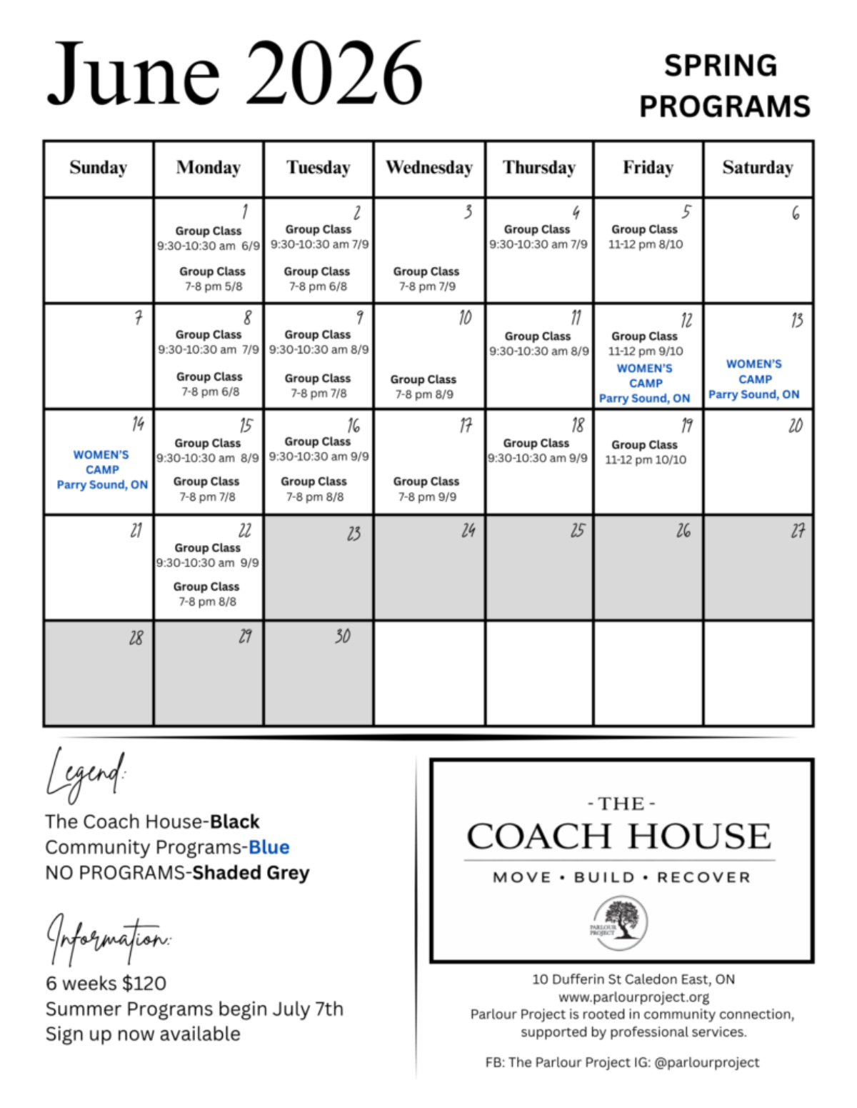 • Group classes and Specialty Programs do not offer make-up sessions.